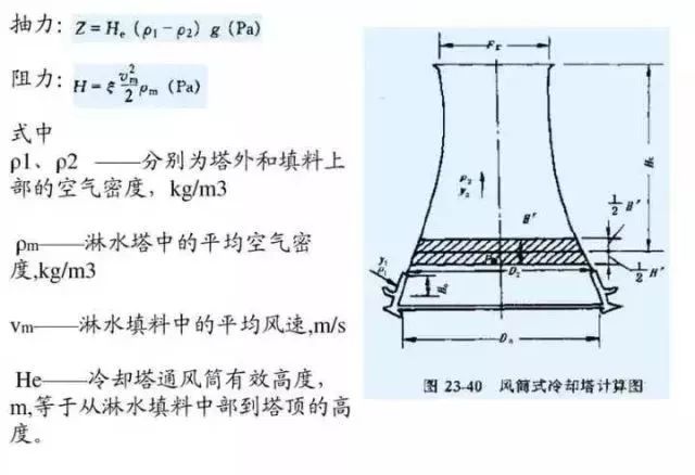 1和2不用解釋,過程3中需要一個公式,即冷卻的能力(單位面積抽力)只和冷卻塔的高度和內外氣體密度差有關,因此冷卻塔造得越來越高,現如今通常都在100米以上,而新造塔都超過了160米甚至出現很多超過200米的塔。