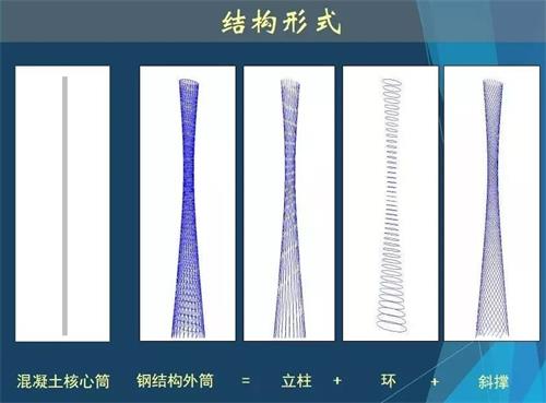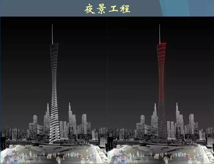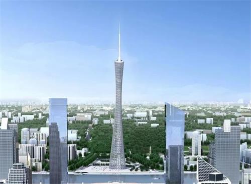 廣州塔塔身整體采用大量的網狀的漏風空洞并設置特質透明玻璃漏出窗景由上小下大的兩個橢圓體扭轉而成,外部鋼結構體系由24根立柱、斜撐和圓環交叉構成。