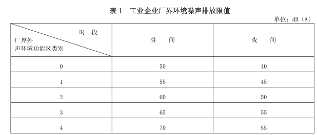 4.1.1 工業(yè)企業(yè)廠界環(huán)境噪聲不得超過表 1 規(guī)定的排放限值。
