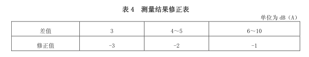 5.7.2 噪聲測量值與背景噪聲值相差在 3dB (A) ~10dB (A) 之間時(shí),噪聲測量值與背景噪聲值的差值取整后,按表 4 進(jìn)行修正。